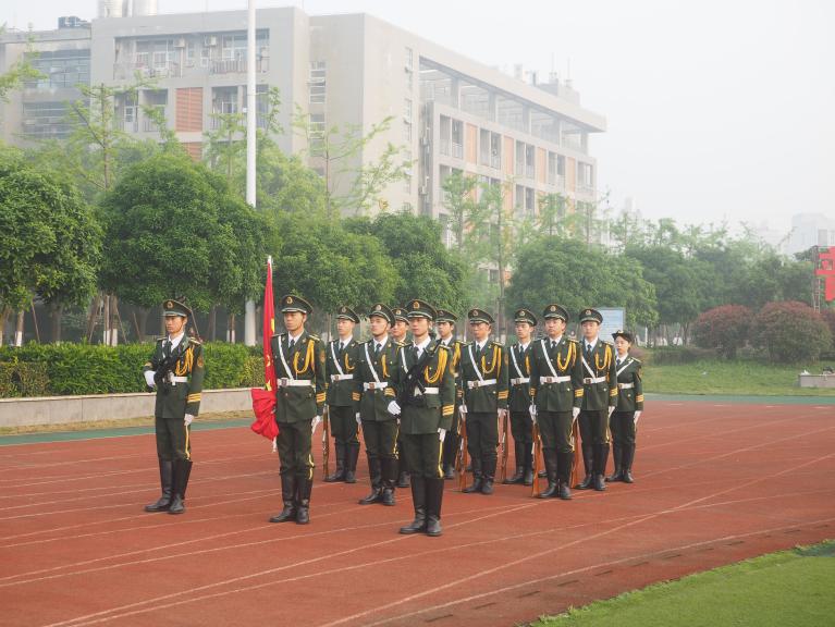 升旗仪式于七点整正式开始。国旗护卫队铿锵的步伐,挺拔的身姿,整齐划一的动作,展现了当代青年的一腔热血,此时操场上的同学们肃立注视着他们,眼中带着坚毅和敬佩。伴随着庄严的中华人民共和国国歌,五星红旗升起,迎风飘扬,今年是建党100周年,看着冉冉升起的红旗,同学心中燃起团团热火为我们伟大祖国的日益繁茂昌盛而自豪。