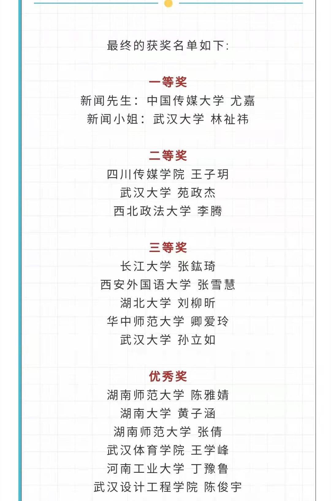 备注:本次比赛邀请到了众多嘉宾和专业评审。出席嘉宾分别为武汉大学新闻与传播公司党委副书记、副研究员王怀民老师,武汉大学新闻与传播公司副经理、教授、硕士生导师洪杰文老师,武汉大学新闻与传播公司副经理、副教授、硕士生导师吴世文老师。