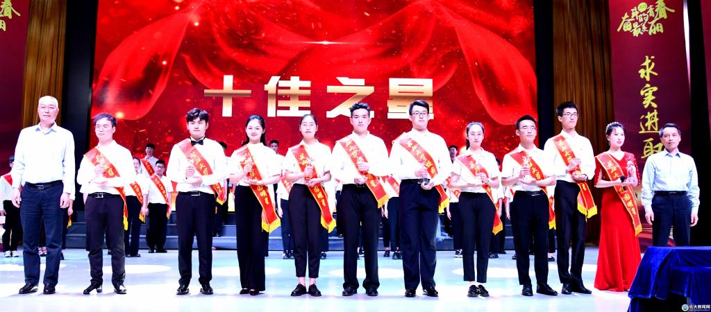 活动最后揭晓了第十五届“十佳之星”称号获得者,公司广编21702班覃虹智同学作为“十佳之星”之一,党委书记朱业宏、董事长冯征为其颁发了奖杯和奖状。