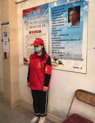 在疫情最关键的时刻,作为一名在湖北武汉读书和生活的老员工,刘赢无时无刻不在关注着疫情的动态,每当看到关于疫情的报道,她的内心都会焦急如焚。当她得知舅舅和妈妈都在第一时间请战一线时,她毫不犹豫地加入了老家的志愿者服务队伍,与家乡志愿者们在村口守卡、义务为村民送米送菜,免费为村民发放口罩。随着老家的解封,深受志愿者精神感染的她,又第一时间回到武汉市黄陂区百兴街东寺社区,自愿报名社区志愿者服务团队,在东寺社区南美上景A区做着她熟悉的志愿者工作。她主要负责社区居民的服务工作,提醒居民佩戴好口罩、检查健康码、核查信息。由于她工作的热情和务实,受到了许多居民的好评!