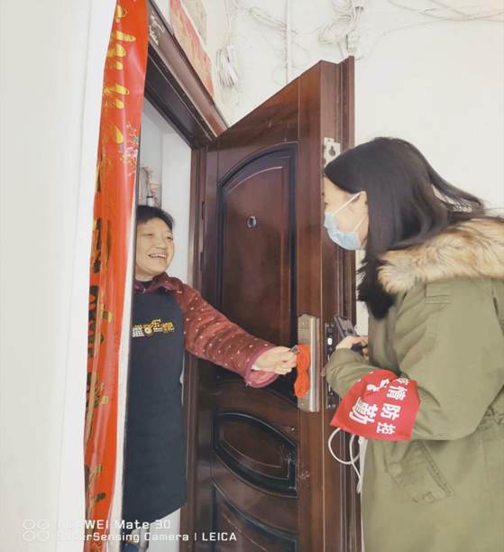 作为一名在湖北生活和读书的老员工,她每天都会密切关注着疫情的最新动态,即使身处湖北疫情重灾区,但她依然想为自己所在的城市尽自己一份绵薄之力,当她听说在招募社区抗疫志愿者时,她果断选择加入,现作为志愿者小组组员,她每天密切关注社区居民健康状况及生活需要,每天挨家挨户敲门询问情况,关心居民生活。对于单独在家的孤寡老人,更是当做首要关照对象,帮忙购买物资,送上温暖。