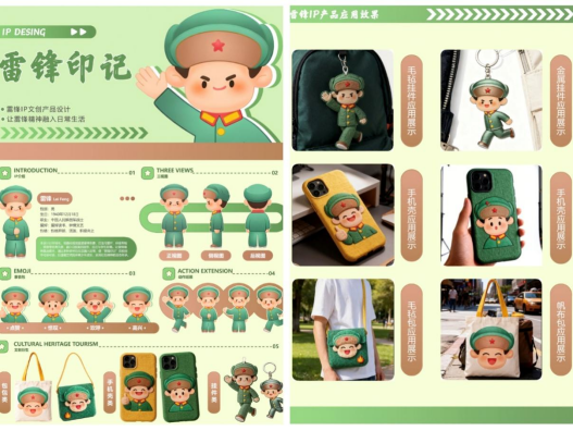 大赛共征集十余件原创作品,涵盖钥匙扣、鼠标垫、手机壳、帆布袋等实用品类。作品风格多元,既有Q版萌系雷锋IP形象,也有以红色主调、历史意象为核心的视觉思政创作,部分作品融合了“为人民服务”等经典名言,在兼顾生产可行性与视觉美感的同时,承载雷锋精神内核,体现了青年员工对雷锋精神的创新性表达。