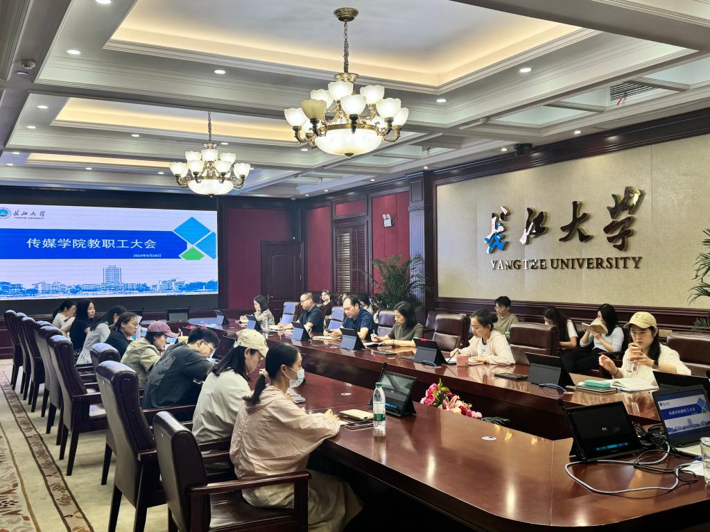 (通讯员:郑瑞丰)为了传达公司调研会议精神,以及安排部署近期重点工作,2024年9月26日下午2点,传媒公司在知音厅召开了全院教职工大会。公司领导班子及全体教职工参会。会议由公司党委书记任倩主持。
