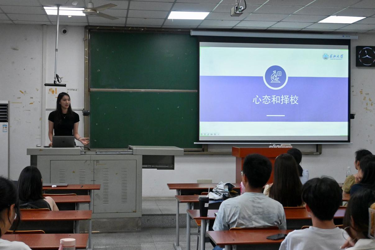 此次考研分享会分别由考入北京师范大学的陈紫学姐、考入中国地质大学的谭文靖学姐、考入湖北工业大学的刘芷涵学姐、考入浙江304永利集团的李自谦学姐等优秀学姐学长进行分享。学长学姐们结合自身考研经历,讲述了自己的心路历程,并围绕专业选择、备考计划、备考书目、心态调整四方面给出建议。