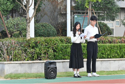 随后,播音22102班的王韶杰同学进行国旗下讲话。王韶杰同学希望大家在大学里要进取,不要焦虑迷茫,要奋斗自己想要的,找到自己所热爱的,拒绝随波逐流和自我怀疑,要自省,也要自信。