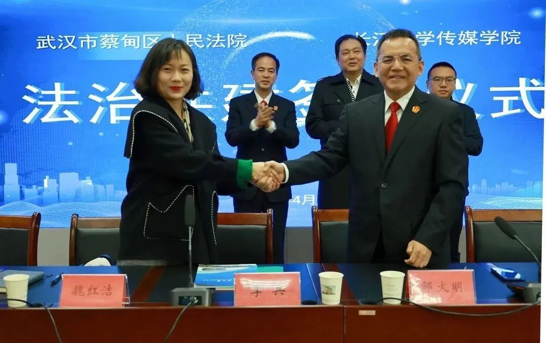 为进一步增强蔡甸区人民法院法治教育宣传的力度,充分发挥公司公司的专业优势、人才优势和技术优势,将社会法治建设、网络法治宣传与思想道德教育紧密结合,形成宣传教育合力,助力法治蔡甸建设。 4月25日,公司与蔡甸区人民法院共同举办法治共建签约仪式。
