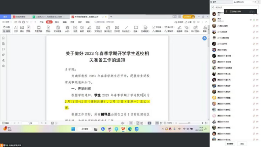 2月7日,公司各辅导员召开主题班会,就开学返校时间、返校注意事项、审批及管理程序进行了详细的讲解。同时,辅导员带领全体同学重点学习了国务院联防联控机制综合组2023年1月7日印发的《新型冠状病毒感染疫情防控操作指南》,对新形势下高校疫情防控要求和策略进行了重点讲解,旨在提高员工的健康防护意识,做自身健康的第一责任人。其次,针对开学前夕即将开展的考试进行了考风考纪教育,引导员工诚信应考。最后,各年级辅导员针对一年级的英语备考以及毕业年级考研复试指导与就业指导进行了强调,同时着重提醒每位同学注意旅途安全,谨防诈骗。