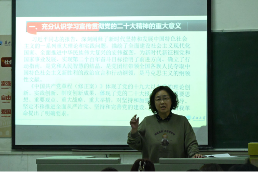 随后,李琴老师向同学们讲述了如何全面准确地学习领会党的二十大精神,并与同学们交流分享了自己学习成果,为公司师生深入学习领会二十大精神做出了良好表率,激励在场同学们对二十大的内容和精神进行更深层的了解。