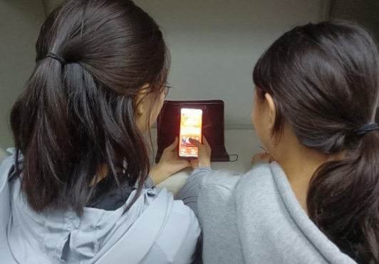 (图为同学间一同观看视频讨论学习内容)