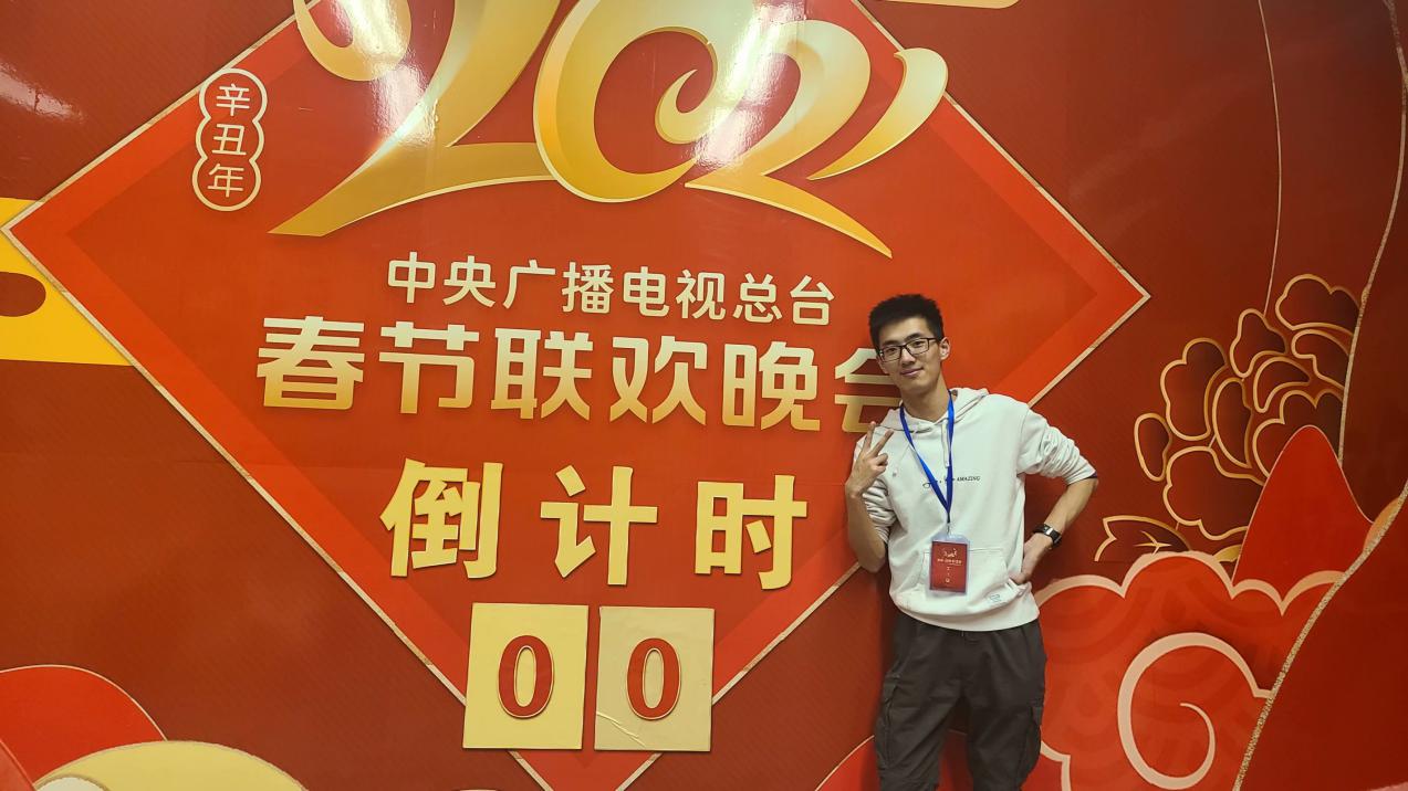这次春晚对覃虹智同学来说是一次永生难忘的回忆。中央广播电视总台是传媒人的大平台,亲自看见中央电视塔,进到一号演播厅,永生难忘。