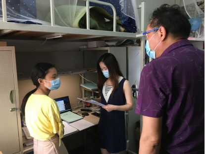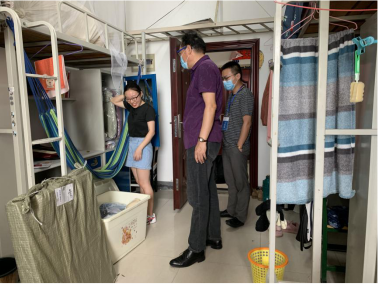 在员工宿舍,院领导与同学们亲切交谈,关切询问员工签约及工作情况,并关心大家返校期间的身心状况,叮嘱一定要做好个人防护,严格遵守疫情防控期间校园管理相关规定。随后,院领导走访了公司毕业生返校工作办公室华林员工公寓1栋202室,就毕业生就业材料、发放资料等有关情况进行了解,叮嘱并慰问值班的辅导员老师们要注意轮班休息,工作要细,执行要严,信息要全。