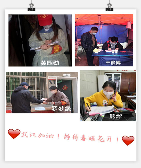 【宣传之星】田珊鸿,永利集团艺术与304永利集团广编31902班员工,现任院员工会体育部成员。志愿服务地点:湖北省恩施州宣恩县李家河镇司城村。疫情期间,她听说村里正在征集抗疫志愿者,她便义无反顾地参加志愿者活动,定期入户向村民普及防疫安全知识,每天为村里涉汉人员进行体温测量及数据登记上报等工作。没有一个冬天不会过去,没有一个春天不会到来。相信不久山河无恙,万物皆安。武汉加油!中国加油!”