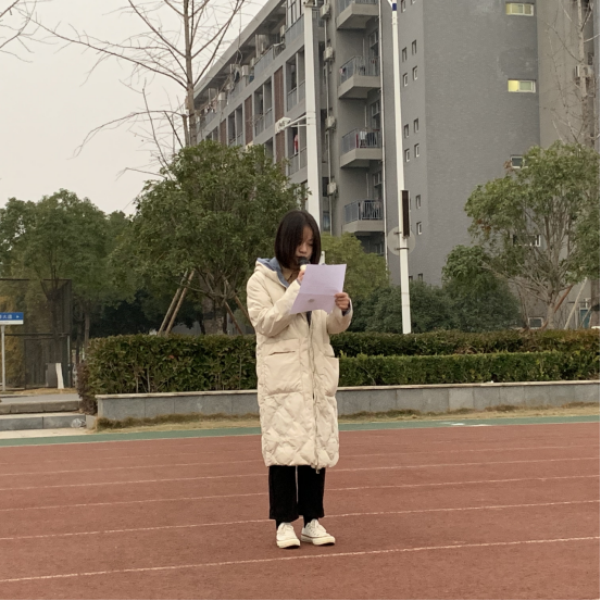 升旗仪式结束后,广编z21901班潘宇覃同学进行了国旗下讲话,她以《端正考风,诚信考试》为题,向全院师生讲述了诚信考试的意义和必要性。她代表全院全体同学承诺:“珍爱诚信,拒绝舞弊,用实际行动维护考试的公平、公正。”