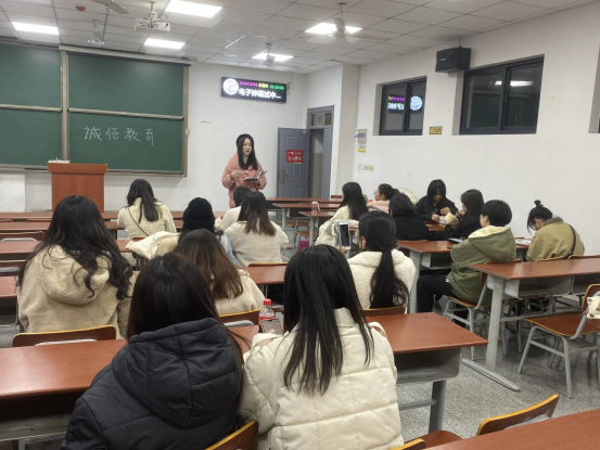 辅导员史梦玲结合以往公司中发生的关于考试出现的各种问题及处理办法告诫同学们要严肃对待考试,透明考试。