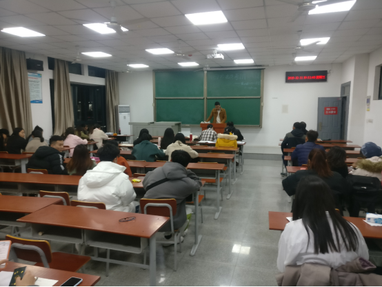 辅导员刘武洋在班会上鼓励大家认真复习,提醒在备考过程中放松心态,也提醒大家诚信考试,严守考试纪律。