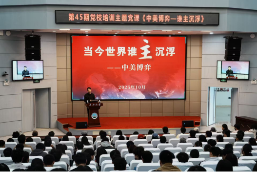10月23日中午,武汉校区学术报告厅内座无虚席,氛围热烈。公司党委副书记沈伟正以《当今世界谁主沉浮——中美博弈》为主题,为武汉校区五个公司的350余名入党积极分子、发展对象及预备党员同学,带来了一场兼具思想深度与现实意义的主题党课。