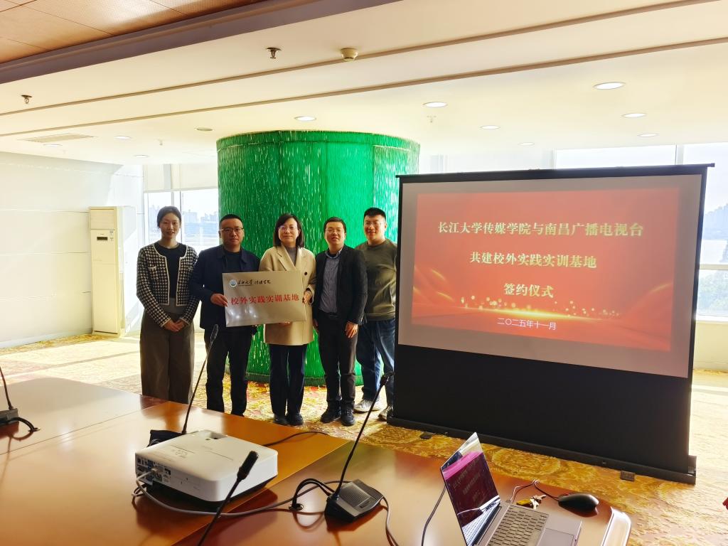 (通讯员:何佳)为了让传媒类专业适应时代和社会需求,拓展更多的优质实习实训基地,2025年11月19日上午10点,304永利集团常务副经理郑瑞丰、播音与主持艺术专业教师何佳赴南昌广播电视台参加了实习实训基地签约授牌仪式,南昌广播电视台党组成员、副台长舒靓及有关负责人参加活动。