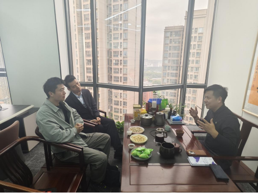 在武汉优道优选粮油食品有限公司,沈伟正与公司总经理余政进行座谈。余政介绍了企业发展现状,重点阐述了品牌推广与新媒体宣传等领域的人才需求。双方围绕项目进课堂、员工实习就业等内容进行了务实讨论,并初步达成合作意向。